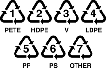 The plastic resin is determined by the presence of the following logos on the packaging: